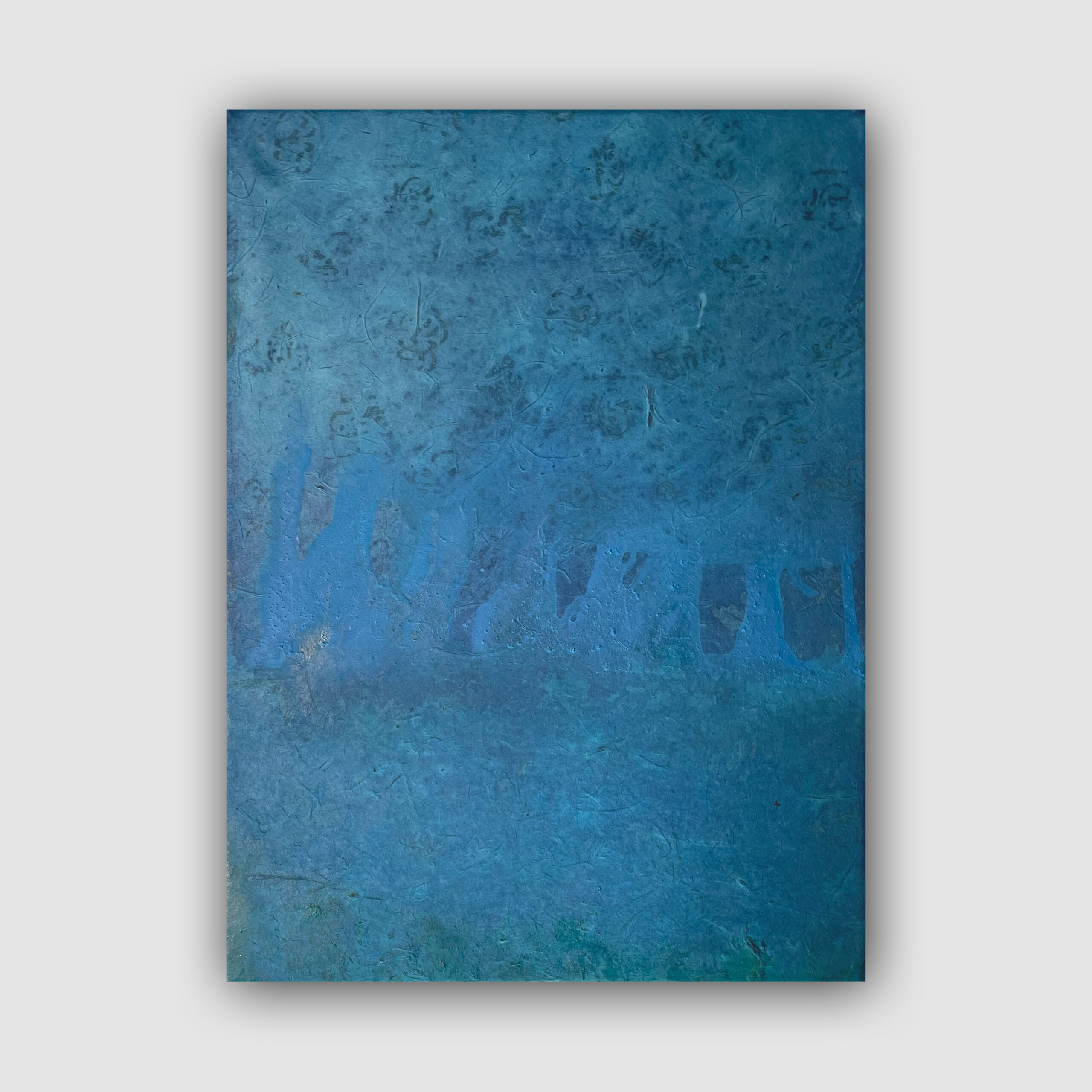 Wabi-Sabi Art | Mixed media on Lokta paper with inward gold print on canvas. (Handmade from Lokta bark that grows above 1,800 m – following a Nepali tradition over 2,000 years old.) | Zurich | "Olmo" is the Italian and Spanish word for elm (Ulmus). Rooted in silence. A whisper of color, form, and time. "Olmo" recalls what fades – and what remains.